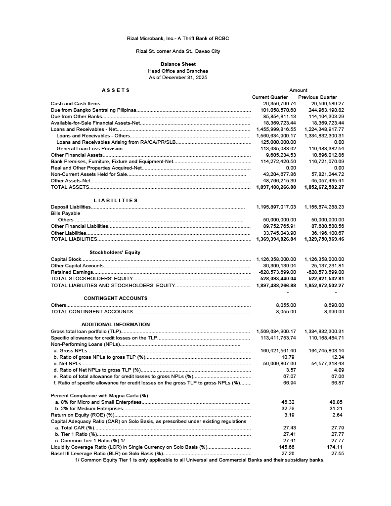 Balance Sheet as of December 2025